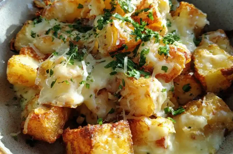 This creamy garlic parmesan air fried potatoes recipe uses an air fryer to create perfectly crispy edges and fluffy interiors. The potatoes are tossed in a savory spice blend and coated in a gooey Parmesan melt sauce for a comforting side dish.