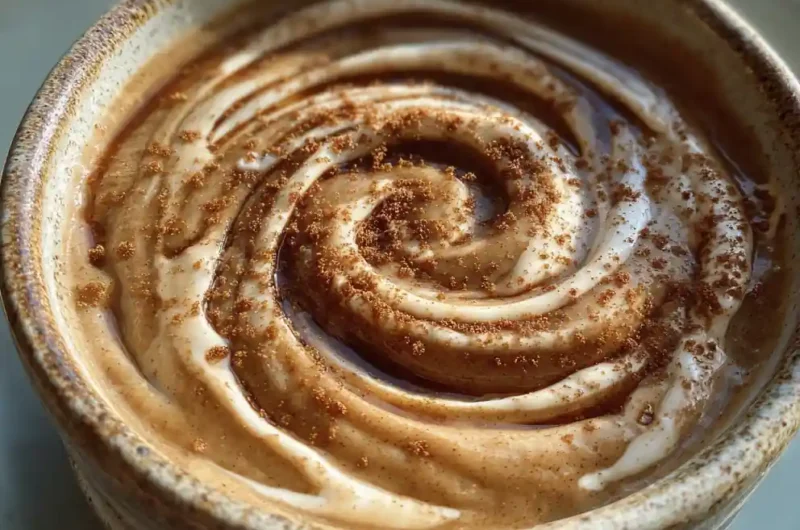 6. Garnish and Enjoy: For the final presentation, lightly dust the surface with an additional pinch of ground cinnamon. For added visual appeal, create one deliberate, slightly thicker drizzle of the tahini mixture across a portion of the puree before serving immediately while warm.