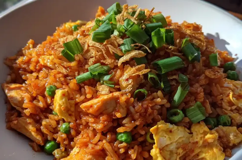 This authentic fried rice recipe features a smoky gochujang glaze that coats every grain of rice, offering a family-friendly meal that tastes far better than takeout. It combines tender chicken and crisp vegetables in a rich, savory, and slightly spicy dish that takes only minutes to prepare.