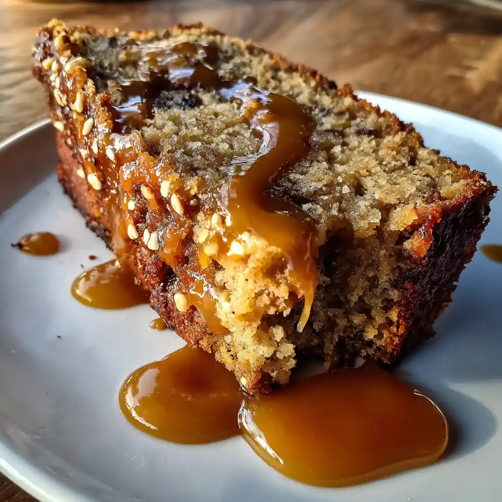 - Serve with Reserved Caramel: Slice the cooled banana bread into thick pieces. Gently rewarm the reserved caramel (about 15 seconds in the microwave) if needed. Drizzle generous ribbons of the warm caramel over each slice and finish with a sprinkle of toasted sesame seeds for crunch.