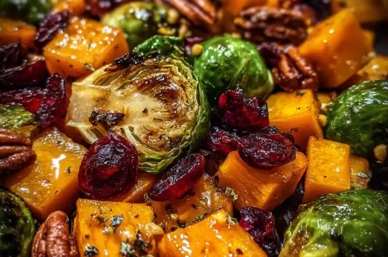 This sheet pan recipe features roasted butternut squash and brussels sprouts with dried cranberries and pecans, seasoned with warming spices like cinnamon and sage. It’s a healthy, comforting, and easy-to-make dish perfect for busy weeknights or festive meals.