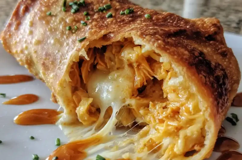 These buffalo chicken egg rolls feature a satisfying crunch of golden, crispy wrappers filled with gooey, cheesy, and spicy buffalo chicken. They are perfect for a fun family meal, party appetizer, or a crowd-pleasing weeknight twist.