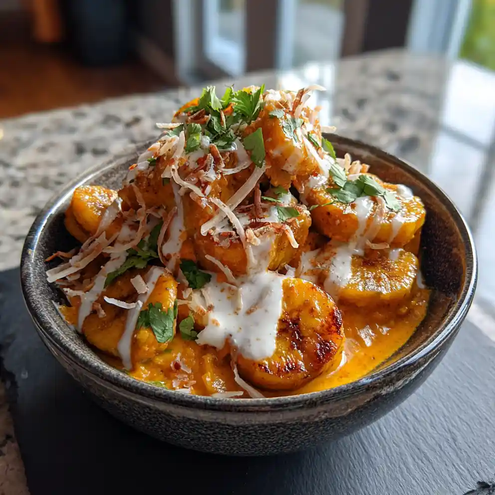 Get ready to transport your taste buds to the Caribbean with this vibrant and flavorful Plantain Curry! This isn’t your average curry; we’re taking sweet, ripe plantains and bathing them in a rich, aromatic sauce infused with warm spices and creamy coconut milk. But the real magic happens with the Coconut-Lime Cashew Swirl – a luscious, dairy-free cream that adds a tangy, tropical twist. This recipe is not only incredibly delicious but also naturally vegan and gluten-free, making it a perfect choice for a satisfying and wholesome meal. Whether you’re a seasoned curry lover or new to Caribbean cuisine, this recipe is sure to become a new favorite!