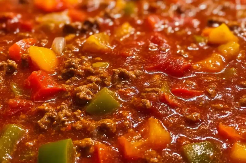 - Brown Meat And Aromatics: Heat a large, heavy-bottomed Dutch oven over medium-high heat. Add the ground beef and cook, breaking it up with a spoon, until fully browned and no pink remains, about 8-10 minutes. Drain any excess fat. Add the chopped onion, bell peppers, and minced garlic; cook until softened and fragrant, about 5-7 minutes.