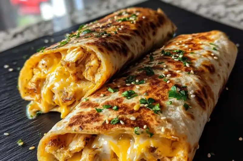 These Cheesy Garlic Chicken Wraps are a quick and easy weeknight meal featuring tender, garlicky chicken and a smoky chipotle lime cream, all wrapped in a warm tortilla. They’re customizable to your spice preference and perfect for busy evenings.