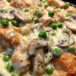 Keywords: Chicken A La King, creamy skillet, easy dinner, comfort food, family-friendly, quick meal, chicken recipe, one-pan, mushrooms, peas