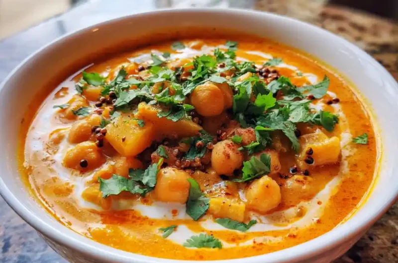 This vibrant vegan curry combines chickpeas and potatoes with aromatic spices and a creamy red pepper cashew swirl for a flavorful and satisfying meal. It’s easy to make and perfect for any occasion.