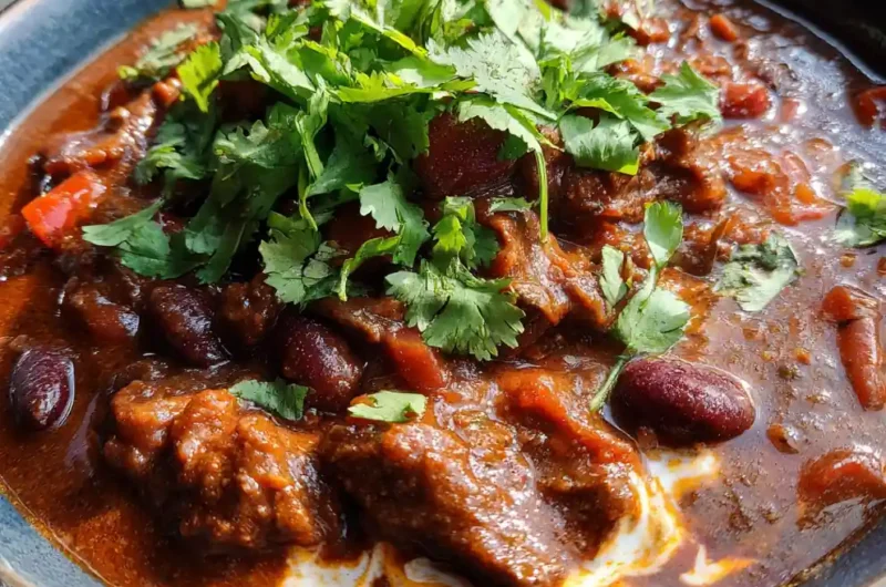 Once the chili has simmered to your desired consistency and flavor, taste and adjust any final seasonings (salt, pepper, or more cayenne if desired). Ladle the hot chili into individual serving bowls and spoon generous dollops of the Creamy Lime-Chipotle Swirl over the top of each serving. Using the back of the spoon, gently swirl the crema into the chili, creating visible ribbons and pools of the creamy mixture. Garnish with a sprinkle of fresh chopped cilantro and serve immediately.