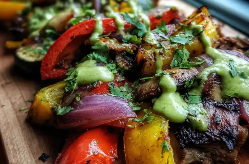This recipe creates vibrant, smoky chipotle fajita vegetables with a creamy avocado-lime drizzle, perfect for a quick and hearty weeknight meal. The combination of charred vegetables and cool, tangy sauce offers a satisfying balance of flavors.