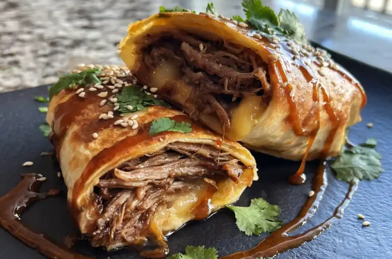 These Chipotle Honey Glazed French Dip Tortilla Roll Ups offer a delightful fusion of classic French Dip flavors in a convenient, fun roll-up form. Tender halal beef, a smoky-sweet glaze, and melty provolone are wrapped in warm tortillas for a crowd-pleasing meal.