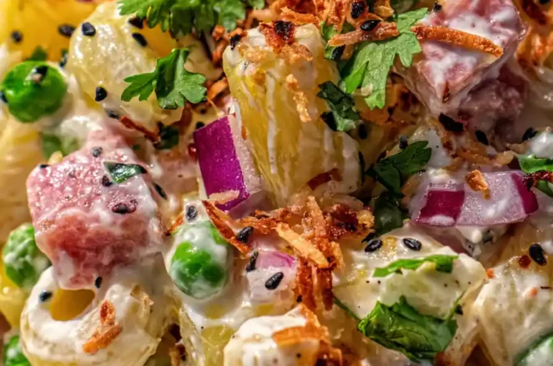 This Classic Macaroni Hawaiian Salad is a creamy, sweet, and savory side dish perfect for barbecues and gatherings. It’s a vibrant mix of macaroni, chicken, pineapple, and a tangy dressing, offering a taste of paradise in every bite.