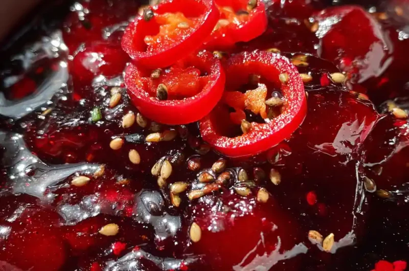 This cranberry pepper jelly is a gourmet yet simple-to-make sweet and spicy spread, perfect for elevating any meal with its vibrant, wholesome flavor profile. It strikes an ideal balance of tart fruit, savory warmth, and a gentle kick, making healthy eating a breeze.