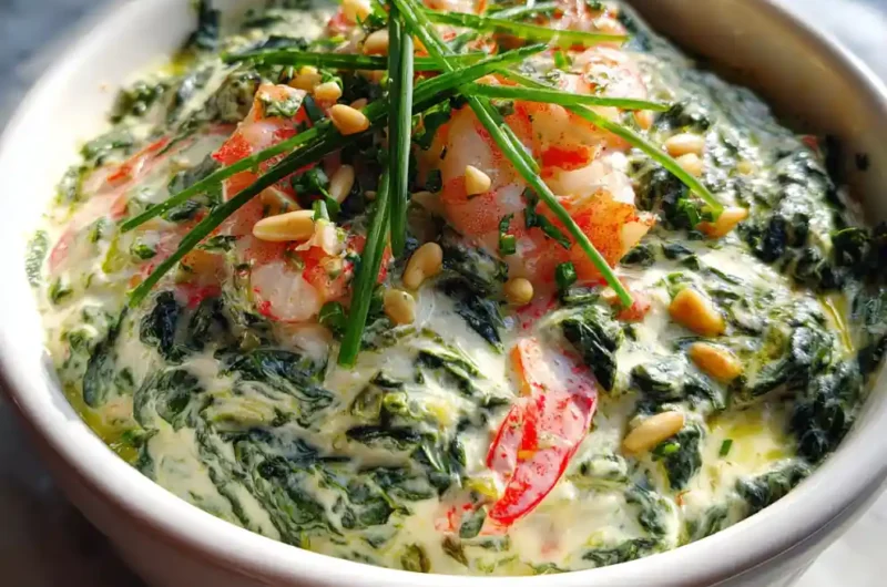 This Creamy Seafood Spinach Dip with Roasted Red Pepper Swirl is a flavorful and elegant appetizer perfect for gatherings. It combines rich creaminess, fresh spinach, succulent seafood, and a vibrant roasted red pepper swirl for a delightful taste and visual appeal.