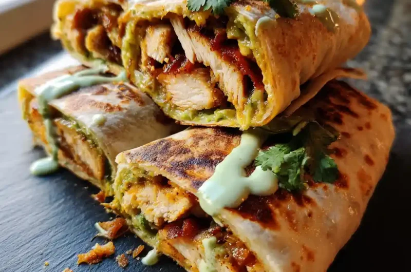 These Crispy Chicken & Smoky Turkey Ranch Wraps offer a delightful combination of crispy chicken, smoky turkey bacon, and a vibrant avocado-cilantro lime swirl, all wrapped in a warm tortilla. It’s a quick and flavorful meal perfect for any occasion.