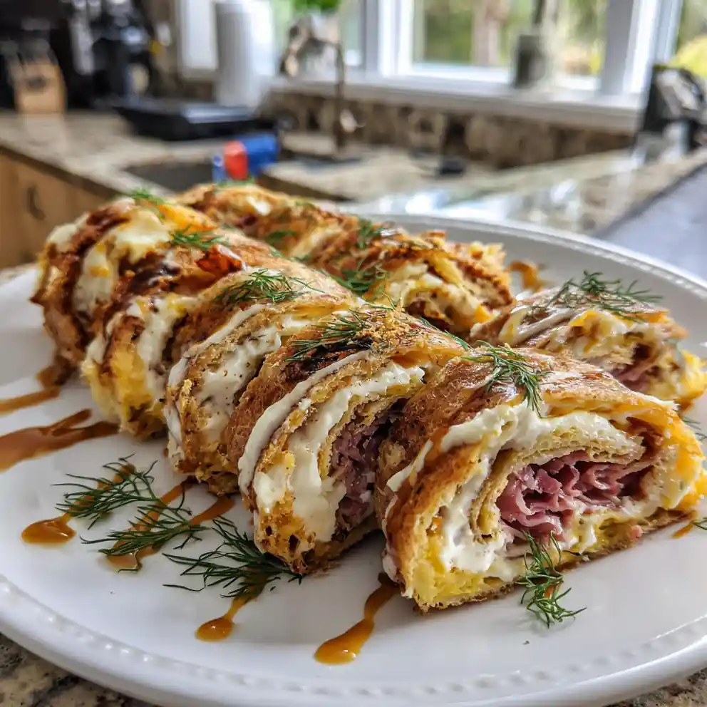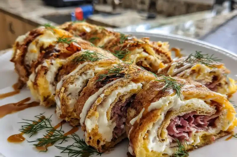 These Crispy Reuben Roll-Ups offer a fun, portable twist on the classic Reuben sandwich, featuring savory roast beef, tangy sauerkraut, and a creamy dill mustard swirl all wrapped in a crispy tortilla. They’re perfect as an appetizer or light meal.