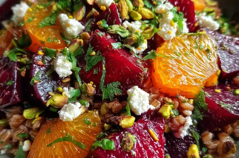 This farro salad with roasted beets and citrus is a vibrant, healthy, and satisfying dish that comes together easily for a busy weeknight meal or meal prep. It features chewy farro, sweet roasted beets, bright citrus segments, crunchy nuts, and fresh herbs, all tied together with a simple vinaigrette.