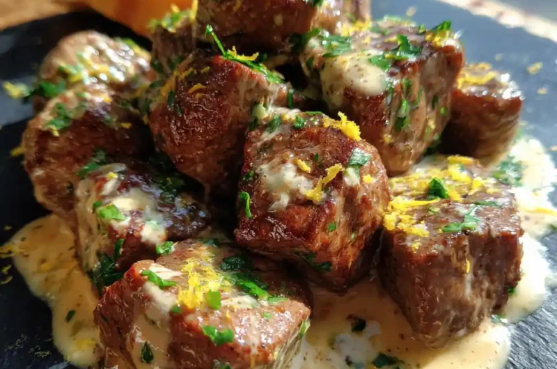- Plate & Garnish: Plate steak bites, drizzle with sauce, and garnish with parsley.