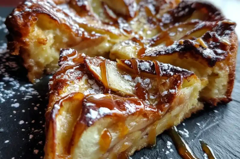 - Rest, Garnish, and Serve: Once baked, remove the skillet from the oven and let the pancake rest for 5 minutes before serving. This allows it to settle slightly and makes it easier to slice. Sprinkle the top with 20g (2 tbsp) of toasted sliced almonds for added crunch and visual appeal. Dust lightly with powdered sugar and a pinch of cinnamon for a beautiful contrast. Slice into wedges and serve immediately. For an extra touch, drizzle any remaining cinnamon-caramel sauce around the plate.