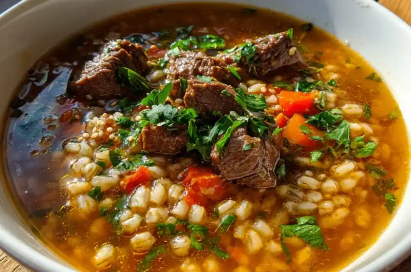 - Slow Cook: Cover and simmer for 45-50 minutes, until barley and beef are tender.