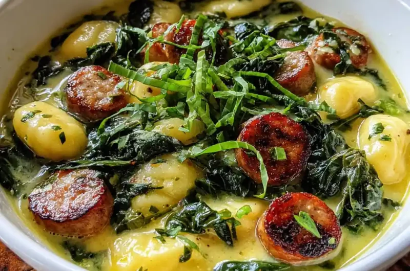 This Herbed Chicken Sausage Gnocchi Soup is a comforting blend of savory sausage, tender gnocchi, and a creamy broth, finished with a vibrant sage-ricotta swirl. It’s a quick and flavorful soup perfect for a cozy meal.