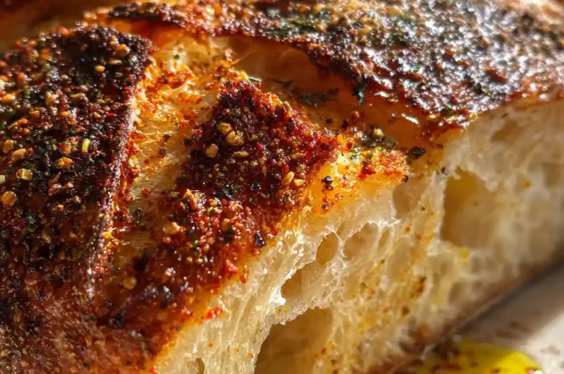 Keywords: sourdough, high hydration, artisan bread, home baking, crispy crust, airy crumb, sumac, za’atar, bread recipe, easy sourdough