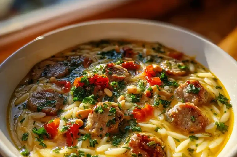 This Italian Sausage Orzo Soup is a comforting and flavorful dish featuring savory sausage, delicate orzo pasta, and a bright lemon-ricotta swirl. It’s a hearty and satisfying soup perfect for a cozy meal.