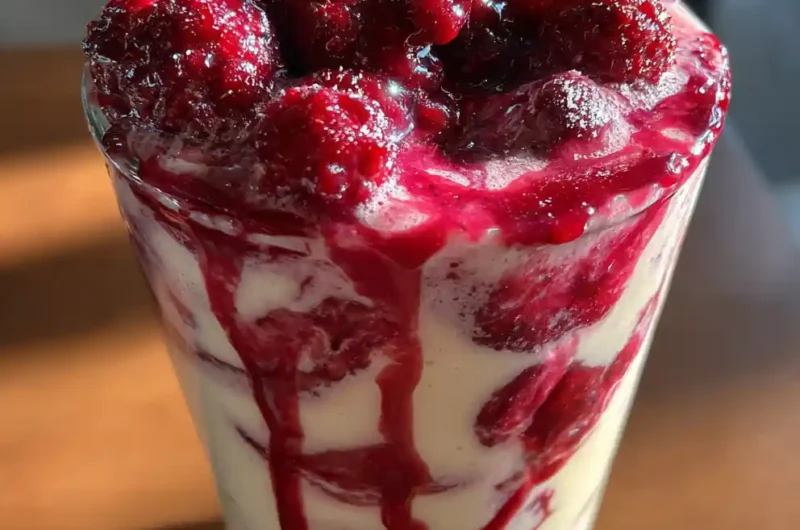 - Garnish and Serve: Drizzle the reserved berry ribbon over the top of the smoothie and garnish with fresh mixed berries. Serve immediately while cold and thick.