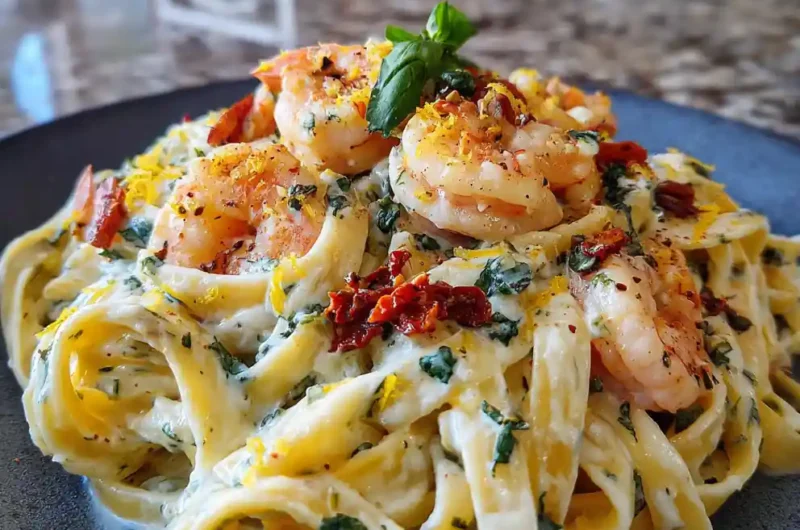 This Lemon Garlic Shrimp Alfredo Pasta is a comforting and exciting dish featuring succulent shrimp, bright lemon flavors, and a stunning sun-dried tomato swirl. It’s a restaurant-quality meal you can easily make at home.