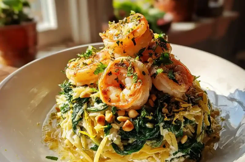 This Lemon Garlic Shrimp with Spinach Orzo is a quick and elegant meal featuring tender shrimp, flavorful orzo, and a creamy herb ricotta swirl. It’s bursting with bright, fresh flavors and perfect for a weeknight dinner or to impress guests.