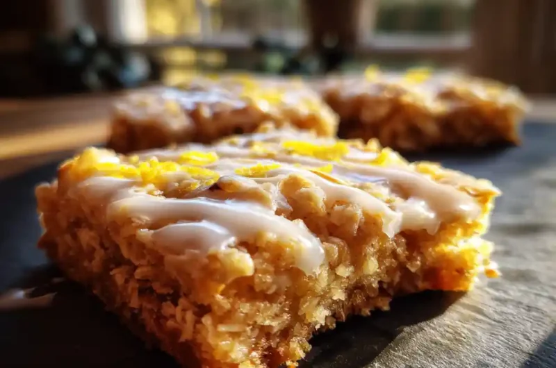 Lemon Oatmeal Crumble Bars With A Toasted Almond Honey Glaze