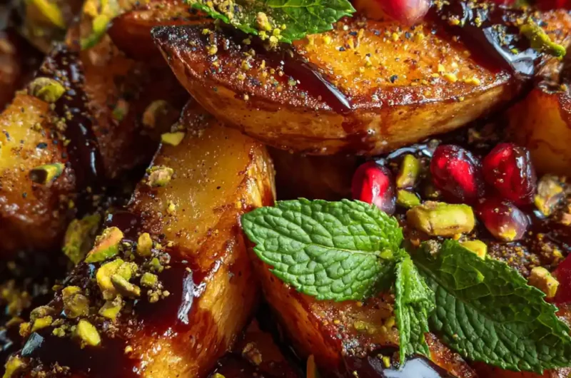 - Final Glaze: Remove the baking dish. Drizzle remaining 15 ml (1 tablespoon) pomegranate molasses over potatoes, toss gently. Return to oven for 5-7 minutes until beautifully glazed, caramelized, with crisp edges.