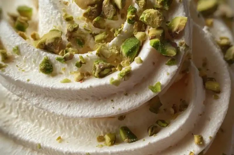 mascarpone frosting . - Chill and Serve: Cover the bowl and refrigerate the frosting for at least 30 minutes. This allows it to firm up slightly and flavors to meld, improving stability when you’re ready to pipe or spread. Once chilled, spread or pipe this dreamy frosting onto your desired cake, cupcakes, or dessert. For a beautiful finish, serve the frosted treat on a dark plate and arrange the toasted crushed pistachios in a loose cluster atop the frosting for a vibrant green contrast.