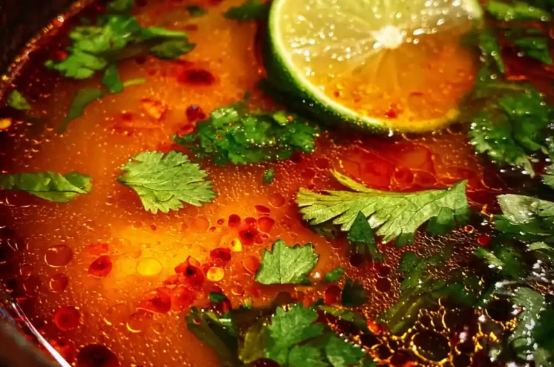 - Serve Your Melting Pot Broth: Ladle the hot, aromatic broth into individual deep bowls. Drizzle each serving with chili-lime oil. Garnish generously with fresh chopped cilantro and 1-2 thin lime wheels.