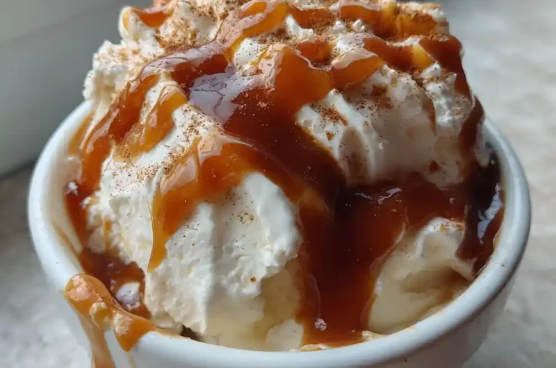 A sophisticated upgrade to classic snow cream featuring a rich, creamy texture and a warm brown butter cinnamon drizzle.