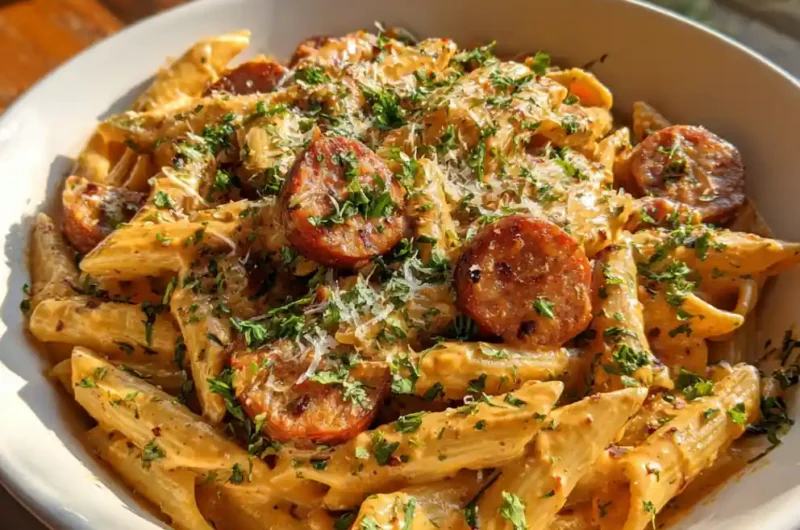 One Pot Smoked Chicken Sausage Pasta With Chipotle Cream