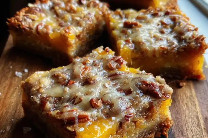 These Orange-Maple Pecan Pie Bars feature a buttery shortbread crust, a chewy pecan filling, and a luscious cream cheese swirl, all topped with a bright orange-maple glaze. They’re perfect for fall gatherings or a cozy treat with coffee.