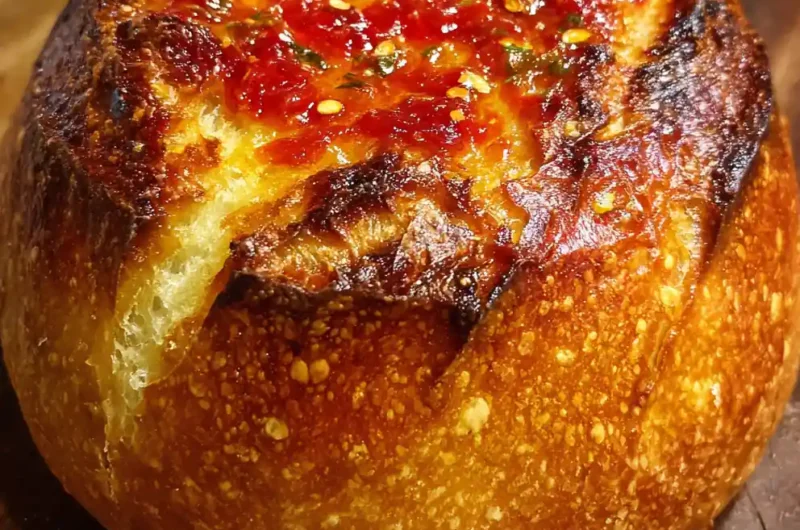 - Bake Bread: Preheat your oven to 425°F (220°C) with the Dutch oven inside for at least 30 minutes to ensure it’s piping hot. Carefully place the dough in the hot pot, cover, and bake for 30 minutes. Remove the lid, spread the vibrant tomato-chili stain over the top of your rustic round, and bake for another 5-10 minutes until golden brown and crusty, sounding hollow when tapped.