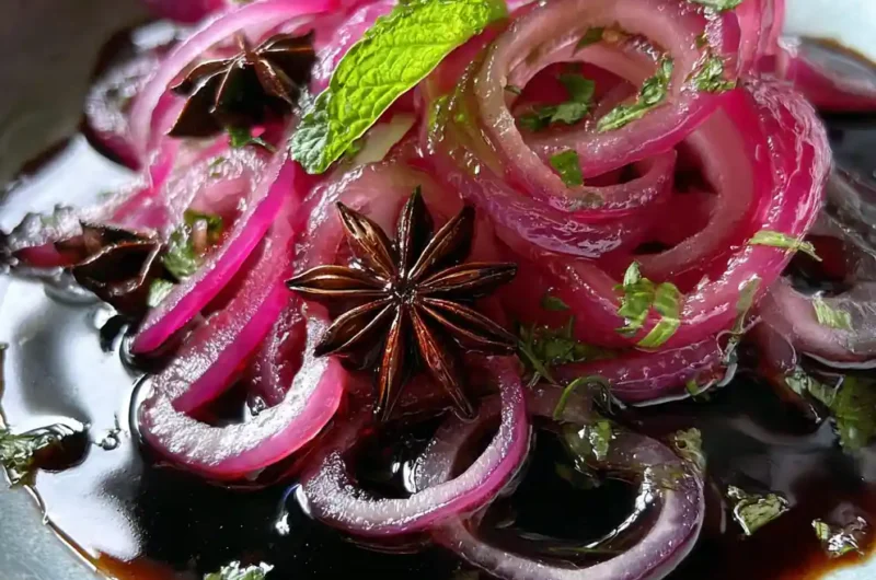 This quick recipe creates sweet-tart pickled red onions infused with pomegranate molasses and star anise, perfect for adding vibrant color and balanced acidity to various dishes.