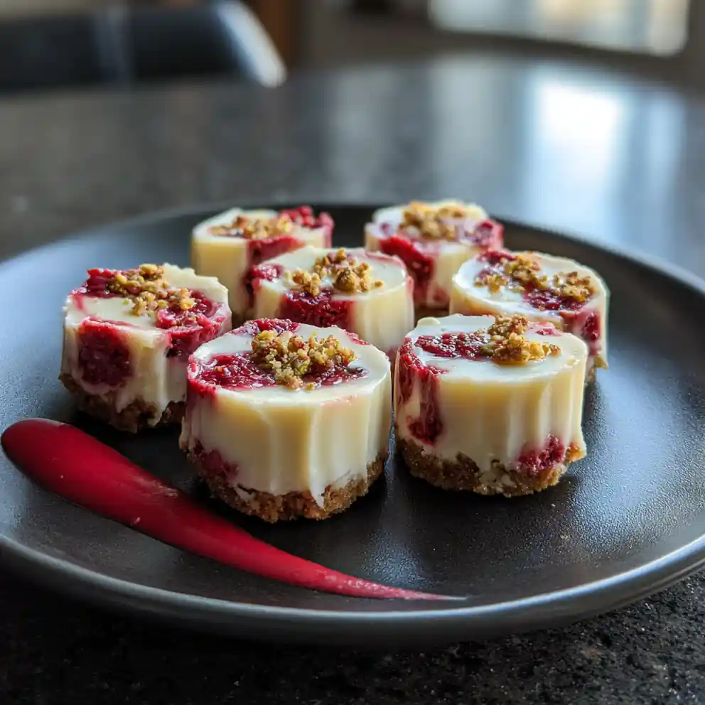 - Presentation is Key: Plate the Red Velvet Cheesecake Bites on a matte black or white ceramic plate, arranging them in a single, elegant row. For an extra touch of sophistication, add a thin line of extra raspberry puree beside the bites.