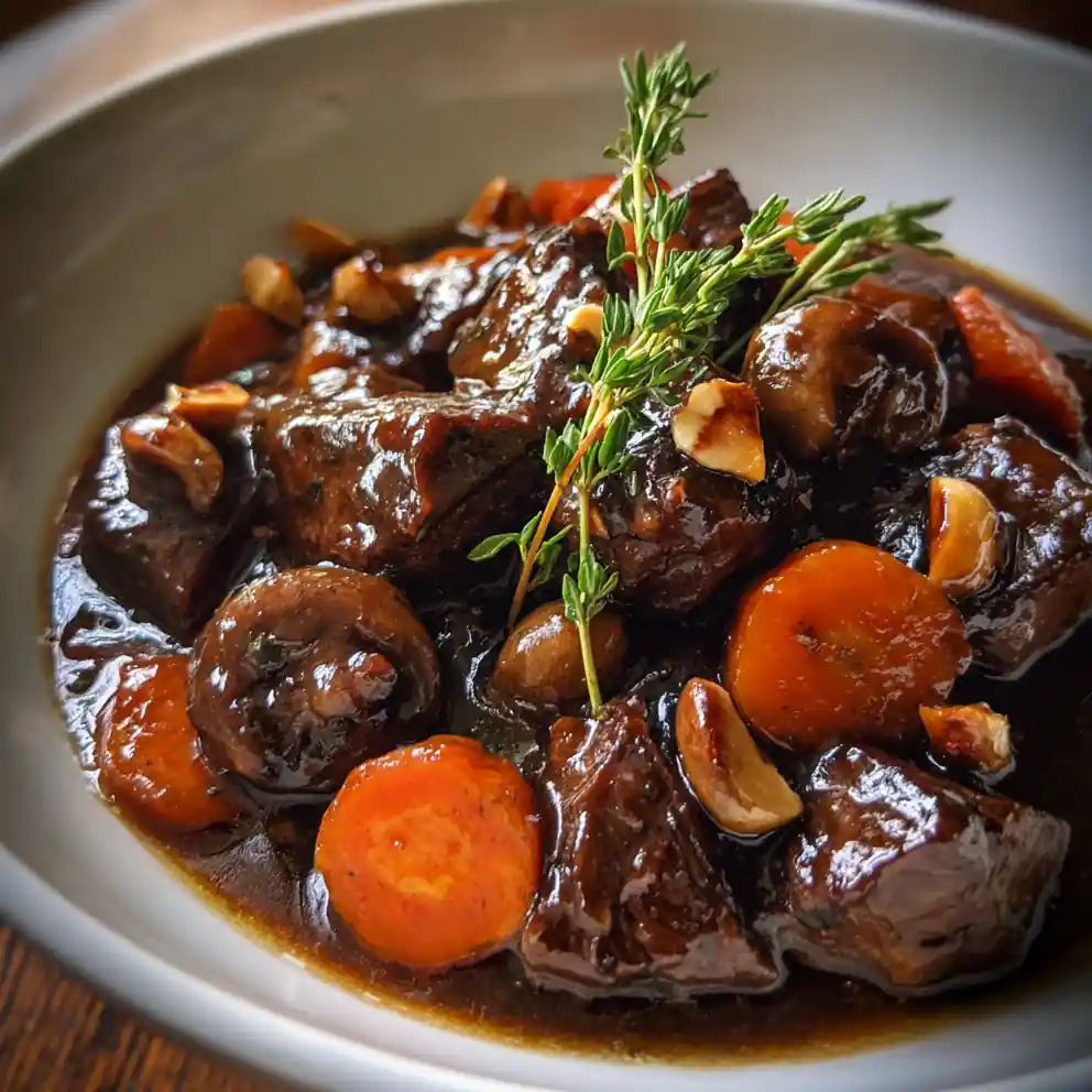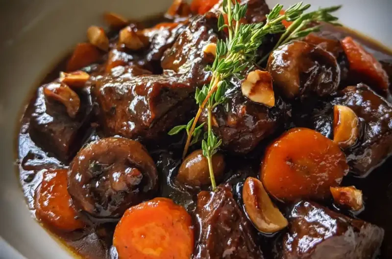 This recipe elevates classic Beef Bourguignon with a vibrant pomegranate glaze, creating a balanced and unforgettable dish. The pomegranate cuts through the richness, offering a modern twist on a French staple.