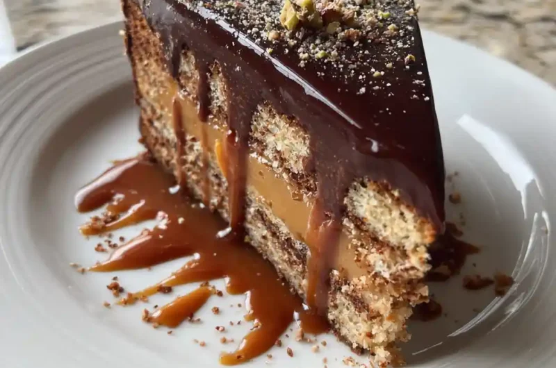 Indulge in this Salted Caramel Cake with Espresso Caramel Ganache, a delightful combination of sweet, salty, and subtly bitter flavors. This show-stopping dessert is perfect for special occasions or a luxurious treat.
