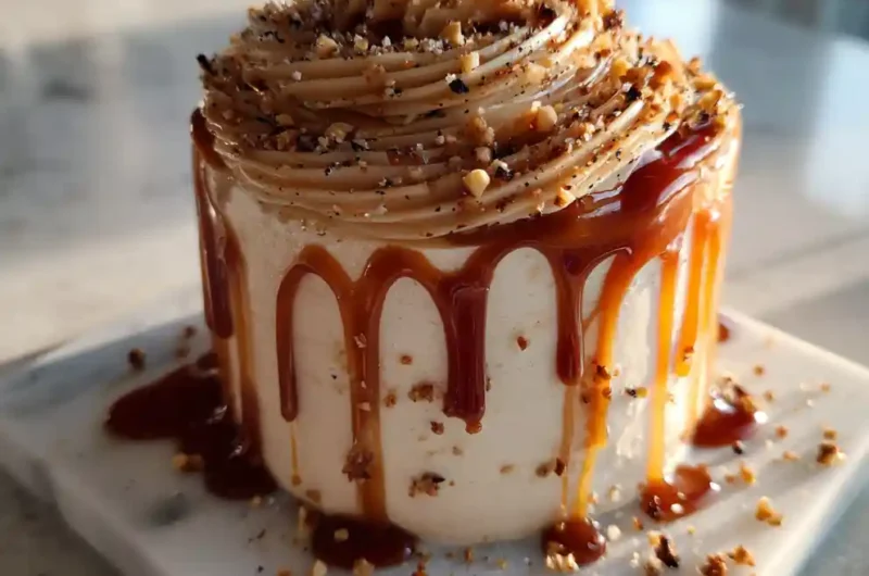Indulge in a luxurious Salted Caramel Frosting with a mesmerizing espresso caramel swirl. This frosting balances rich caramel sweetness with a bold espresso kick, creating a silky smooth texture perfect for any celebration.