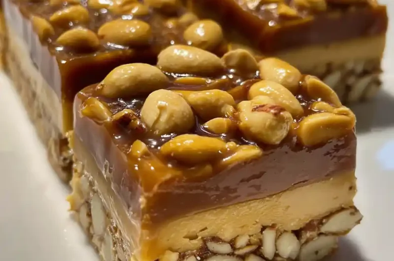 These easy Salted Nut Roll Caramel Peanut Bars are a no-bake treat combining a chewy nougat base with a sticky caramel layer and crunchy roasted peanuts. They are ideal for quick desserts, lunchboxes, or a crowd-pleasing snack, coming together with minimal fuss.