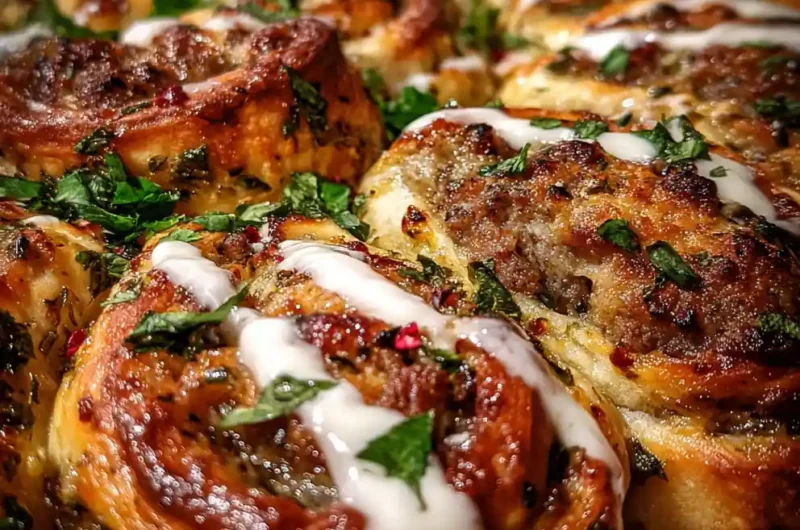 - Rest and Serve: Let the baked wreath rest on the baking sheet for 5-10 minutes before transferring to a serving platter or large wooden board. Drizzle the Lemon-Tahini Yogurt Drizzle artfully over the warm wreath, allowing it to cascade between the rolls. Finish with a generous sprinkle of the reserved sumac, fresh chopped parsley, and mint for vibrant color and aroma. Serve warm, enjoying the savory flavors.
