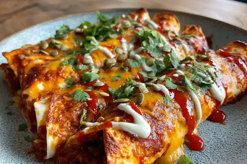- Rest, Drizzle & Garnish: Let the baked enchiladas rest for 5 minutes before serving. Drizzle generously with the avocado lime crema, allowing it to pool and create a beautiful contrast with the red sauce. Finish with a sprinkle of toasted pumpkin seeds and extra cilantro leaves for added texture and freshness.