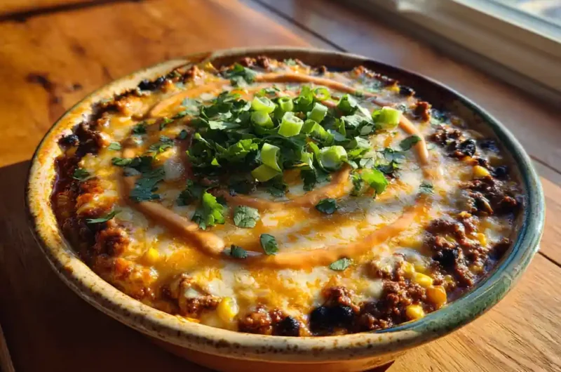 This Smoky Chipotle Swirl Meaty Texas Trash Dip is a hearty, layered dip with savory ground beef, beans, corn, and a smoky chipotle cream swirl. It’s perfect for parties or a cozy night in and is sure to be a crowd-pleaser.