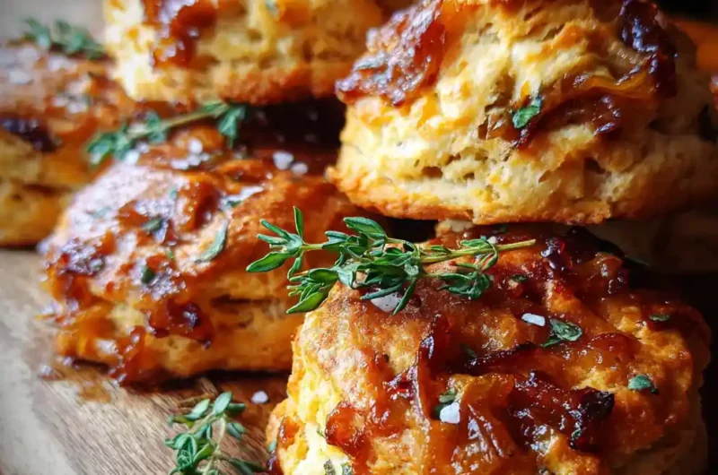 Soft and flaky sour cream biscuits featuring a savory swirl of sweet caramelized onions and fresh thyme. This recipe transforms a simple side into an elegant centerpiece.