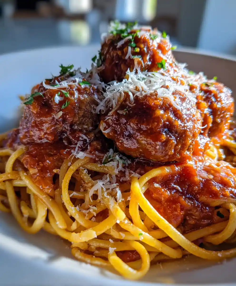- Serve Dish: Toss the cooked spaghetti with a ladleful of the rich ‘Red Flood’ sauce. If the pasta seems dry, add a splash of the reserved pasta water to loosen it up. Top with plenty of meatballs and a generous sprinkle of fresh Parmesan cheese.