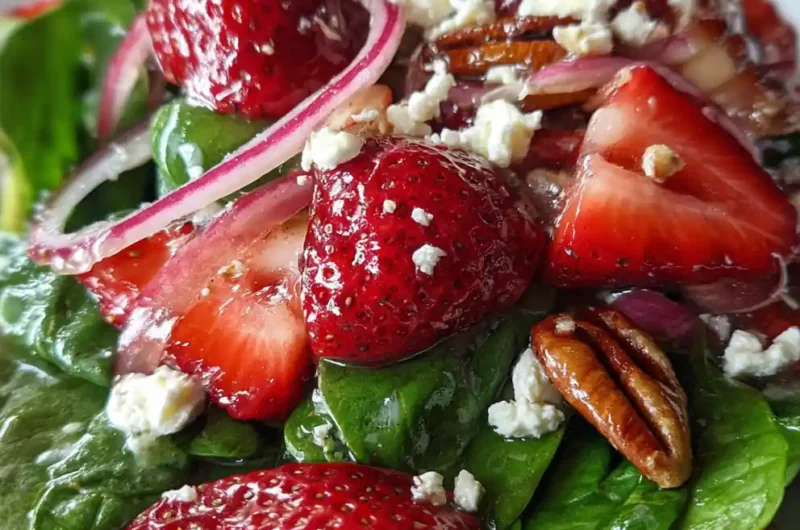 This strawberry spinach salad with Ruby-and-Emerald Layers is a vibrant, fresh, and family-friendly dish, perfect for busy weeknights. It offers a burst of fresh flavors and comes together quickly with minimal fuss.