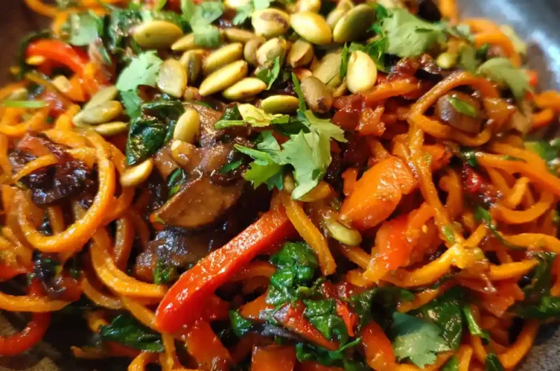 - Serve & Garnish (1 minute): Transfer the vibrant sweet potato noodles to shallow individual serving bowls. Garnish generously by scattering toasted pepitas over the top for a satisfying textural crunch and earthy notes. Finish with a shower of bright green, freshly chopped cilantro. Serve immediately, perhaps with a lime wedge on the side for an extra burst of tang.